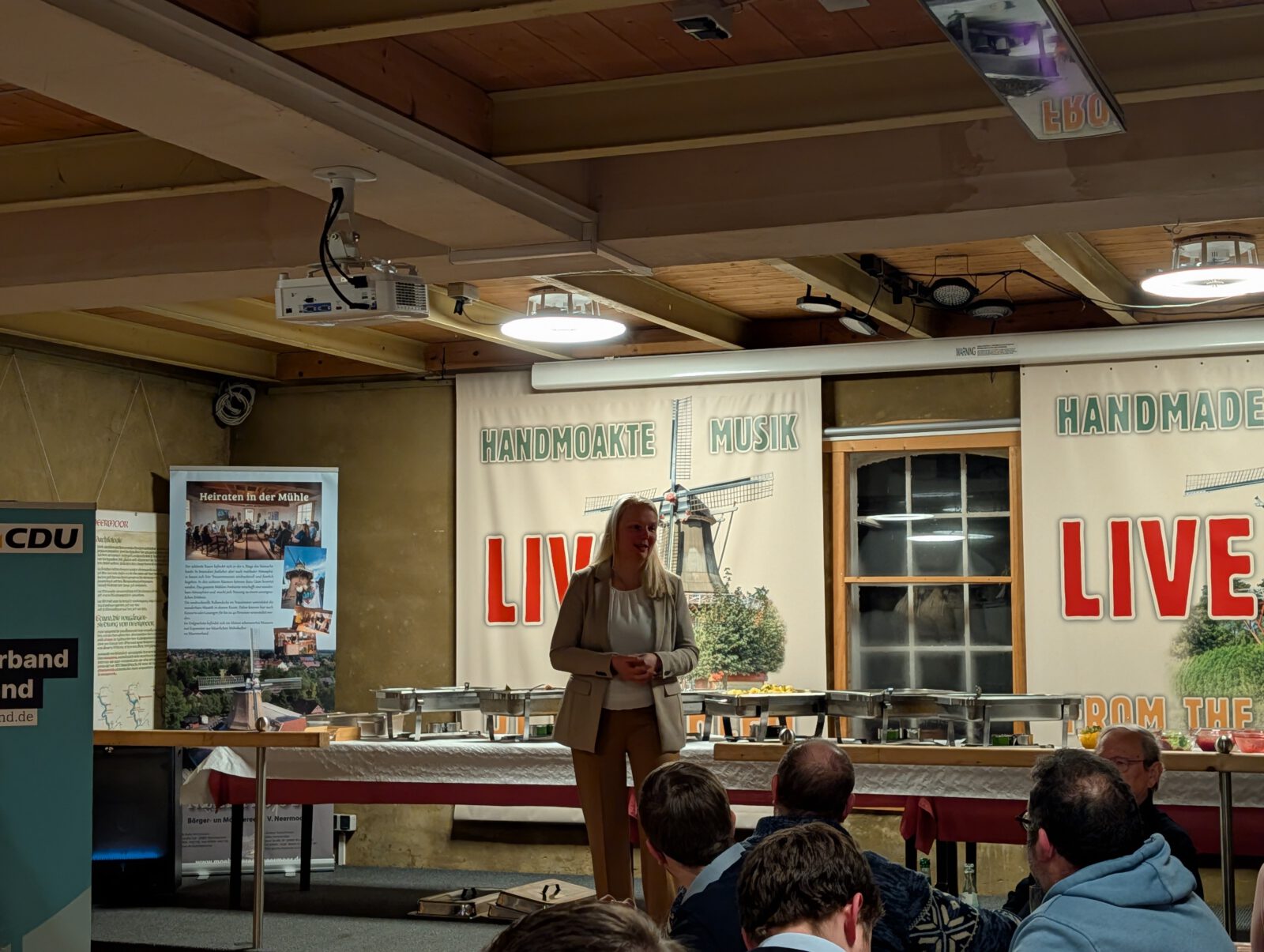 Am 06.02.2026 feierte die CDU Moormerland ihr Winterfest in der Mühle Neermoor. Als Gäste konnten Bürgermeister Hendrik Schulz, der Kreisgeschäftsführer Ralf Jurczyk sowie die stellvertretende Kreisvorsitzende Silke Kuhlemann begrüßt werden.